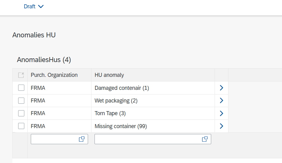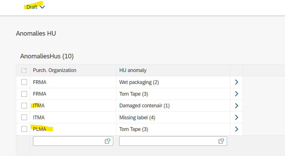 Cependant, en activant le mode Draft sur l’application Fiori, nous pouvons voir que l’utilisateur est capable de visuliser les entrées en « Draft » dans l’application, même si elles ne font pas parti de son organisation d’achat :